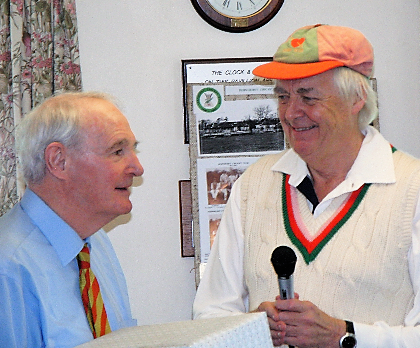The picture shows Trevan (left) on his retirement from the Presidency in 2009. Sir Tim Rice, who remains a Vice President of FCC, presented him with six Waterford crystal tumblers.